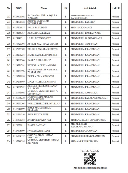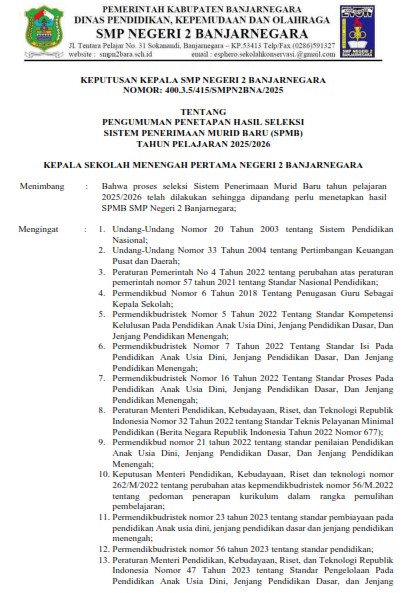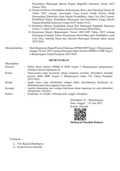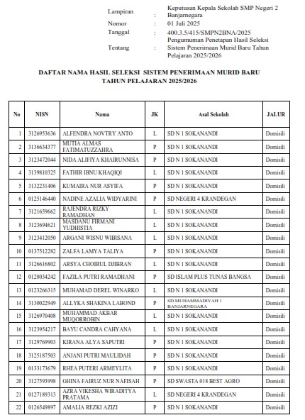 PENGUMUMAN PENETAPAN HASIL SELEKSI SISTEM PENERIMAAN MURID BARU (SPMB) TAHUN PELAJARAN 2025/2026