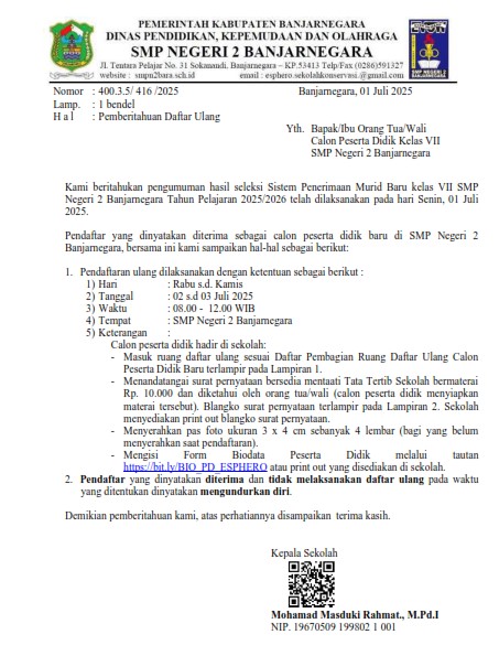 - Surat Pemberitahuan Daftar Ulang dan Lampirannya silahkan dapat diunduh dengan cara klik DISINI