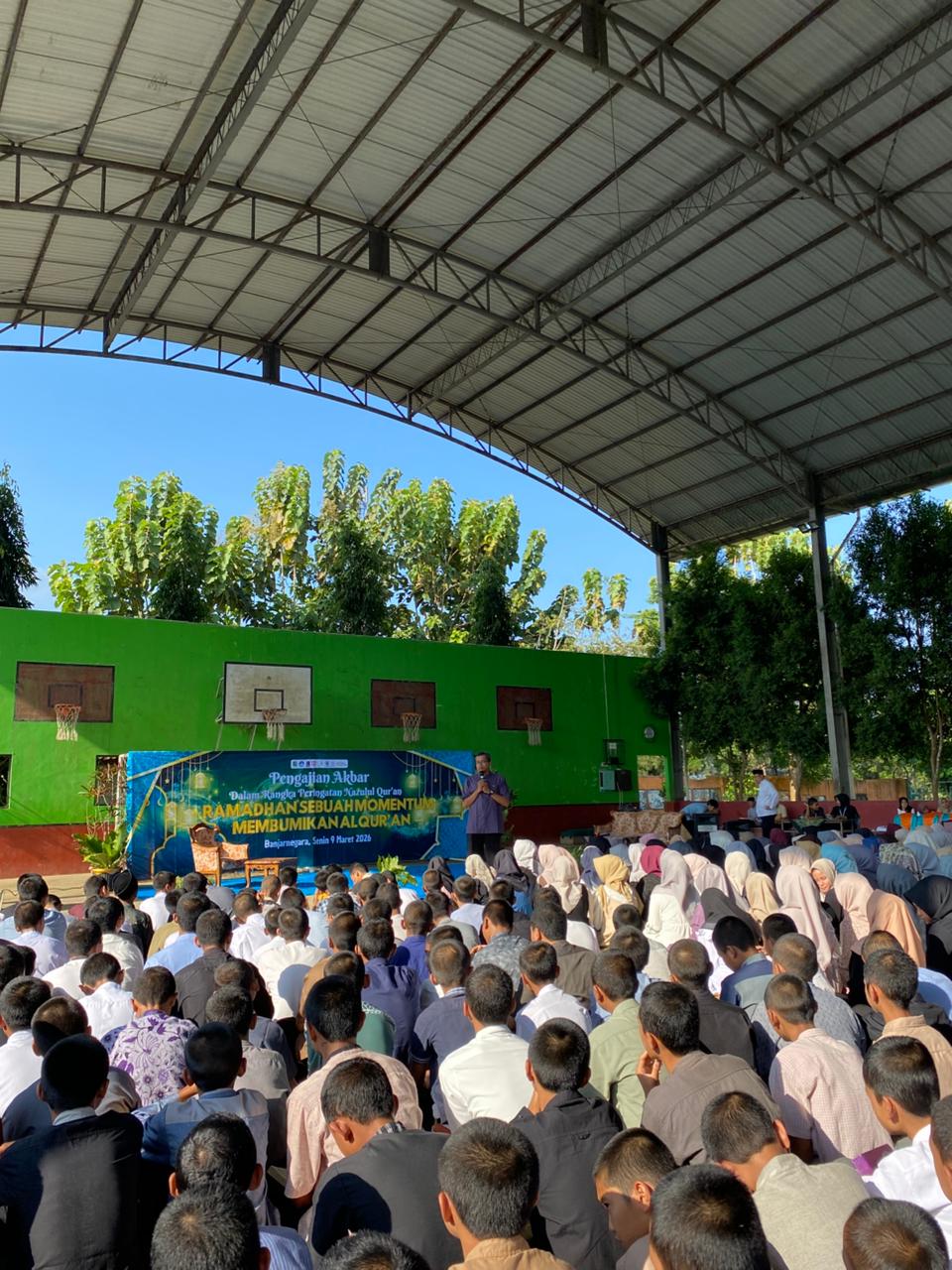 Banjaeregara, 9 Maret 2026 – SMP Negeri 2 Banjanegara sukses menyelenggarakan pengajian akbar dalam rangka memperingati Nuzulul Quran, dengan menghadirkan pembicara Ustad Abdul Basit, S.Pd. Acara yang digelar di indoor sekolah mulai pukul 08.30 WIB diikuti oleh lebih dari 500 peserta, antara lain seluruh siswa, guru, karyawan, serta staft tata usaha SMP Negeri 2 Banjarnegara